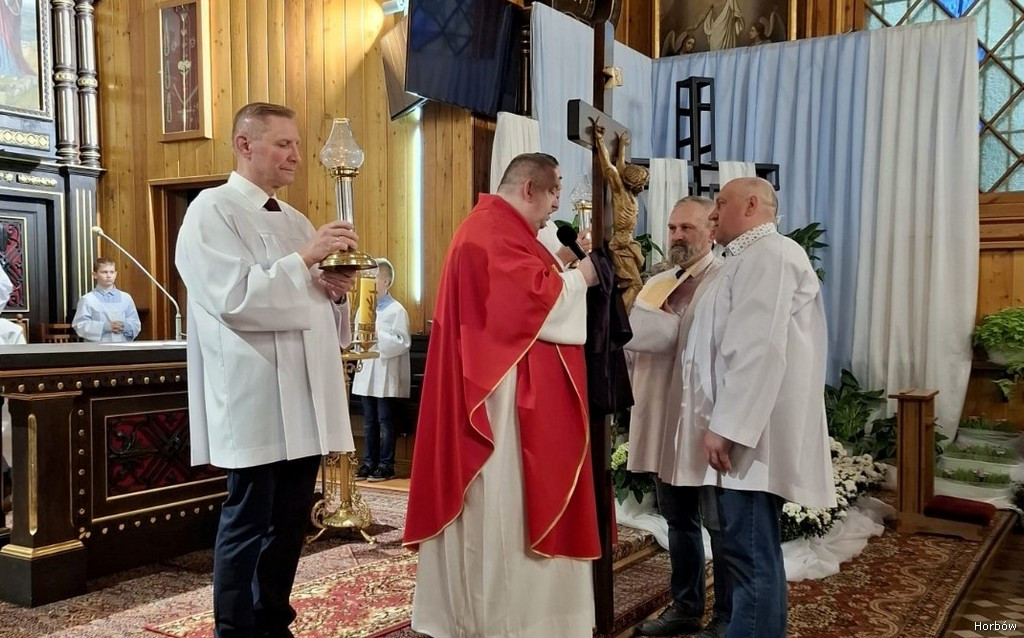 W Wielki Piątek w naszej parafii odbyła się uroczysta Liturgia Męki Pańskiej, która zgromadziła licznych wiernych pragnących wspólnie przeżywać tajemnicę cierpienia i śmierci Jezusa Chrystusa. Nabożeństwo rozpoczęło się w ciszy, wprowadzającej w atmosferę skupienia i modlitwy. Podczas liturgii wysłuchaliśmy opisu Męki Pańskiej, a następnie modliliśmy się w uroczystej modlitwie powszechnej